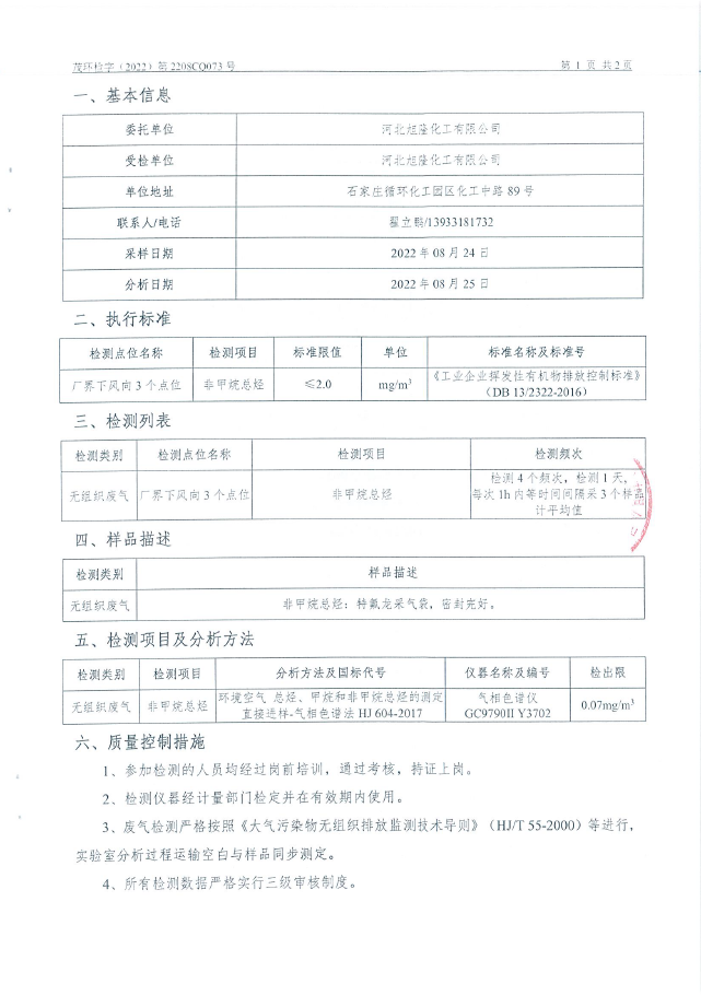 旭隆第三季度廠界非甲烷總烴小時(shí)均值監(jiān)測(cè)報(bào)告